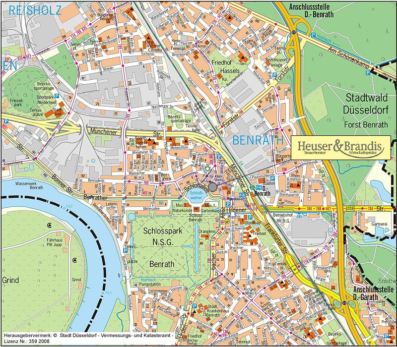 Sie finden uns im Düsseldorfer Süden direkt gegenüber von Schloß Benrath. Eine Anfahrtsbeschreibung können Sie sich hier herunterladen. Zur besseren Orientierung haben wir hier für Sie einen Ausschnitt aus dem Stadtplan von Düsseldorf hinterlegt.